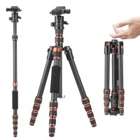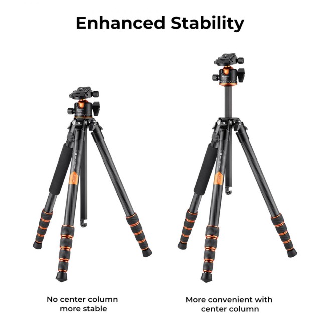 Im Vergleich zu herkömmlichen Kamerastativen verfügt das K&F Concept A255C2+BH-35L Stativ über eine spezielle Mittelsäule, die das Volumen des Stativs um 30% verringert. Einfach mit einer Hand zu tragen.