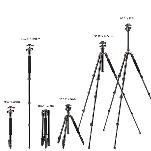 Das K&F Concept B234A1+BH-28L ist ein robustes und dennoch tragbares Teleskopstativ aus einer Magnesium-Aluminium-Legierung in Militärqualität, das für Fotografen entwickelt wurde, die Stärke, Stabilität und Flexibilität verlangen. Mit einem hochbelastbaren 28-mm-Kugelkopf und einem abnehmbaren Einbeinstativ eignet es sich ideal für Reise-, Outdoor-, Makro- und Porträtfotografie.