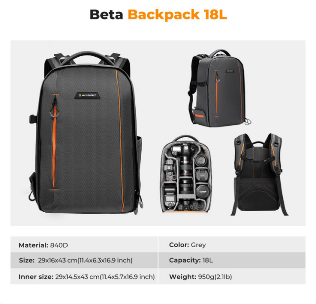 Der K&F Beta Backpack 18L in Dark Grey ist eine leichte, individuell anpassbare Kameratasche für Fotografen, die viel unterwegs sind. Sie bietet Platz für die wichtigsten Utensilien und sorgt für Komfort bei langen Shootings.