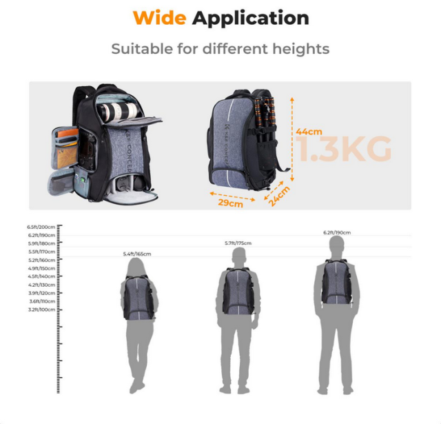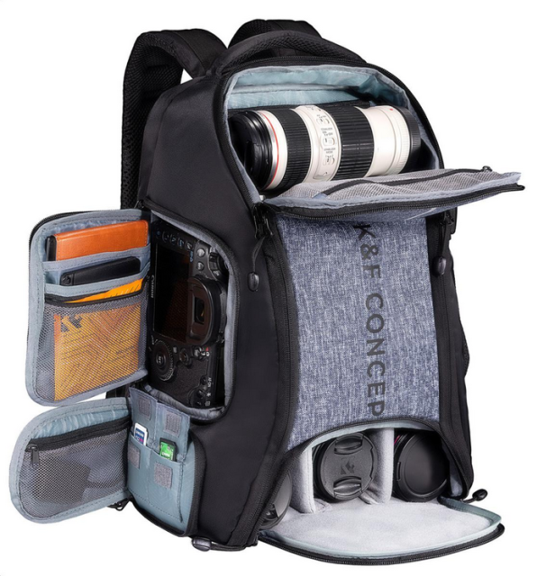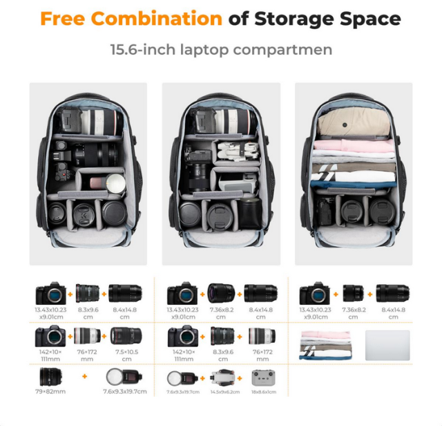 Der K&F Beta Backpack 25L ist eine vielseitige und geräumige Kameratasche für Fotografen, die viel unterwegs sind. Mit Abmessungen von 17,3 x 11,8 x 9,4 Zoll und einem Fassungsvermögen von 25 Litern bietet dieser Rucksack eine dreistufige Unterteilung, die eine anpassbare Organisation für Ihre Ausrüstung ermöglicht. Das obere Fach eignet sich für ein 200-mm-Objektiv oder eine Mavic Air 2-Drohne, das mittlere Fach kann eine Kamera und zwei Standardobjektive oder zwei Kameras aufnehmen, und das untere Fach ist für drei Standardobjektive oder eine Kamera und ein Objektiv vorgesehen. Die Innenpolsterung ist verstellbar, um sie an Ihre speziellen Bedürfnisse anzupassen.