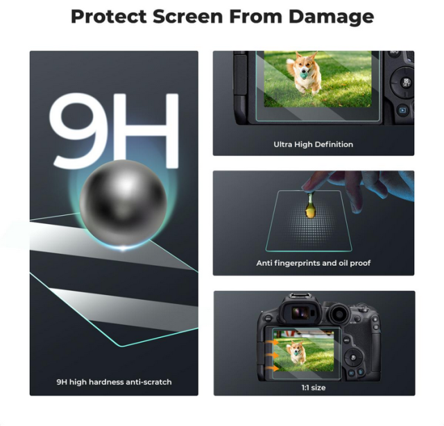 Das K&F Camera Screen Protector Kit für die Canon EOS R6 II, R6 und R7 enthält 3 Displayschutzfolien, 3 Hot-Shoe-Abdeckungen und ein Vakuum-Reinigungstuch. Dieses Kit sorgt dafür, dass das Display Ihrer Kamera dank blasenfreier Installation und hohem Schutz makellos bleibt.