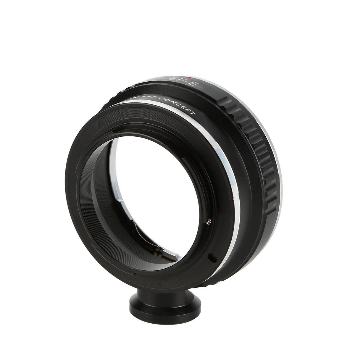 Der K&F Concept Canon EOS EF zu Sony E-Mount Adapter mit Stativhalterung ermöglicht die Montage von Canon EF-Objektiven auf Sony E-Mount-Kameras mit hoher Präzision, reibungsloser Bedienung, eloxierter Aluminiumkonstruktion und Unterstützung für Unendlichkeitsfokus.