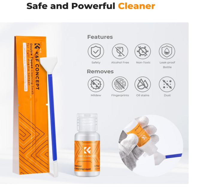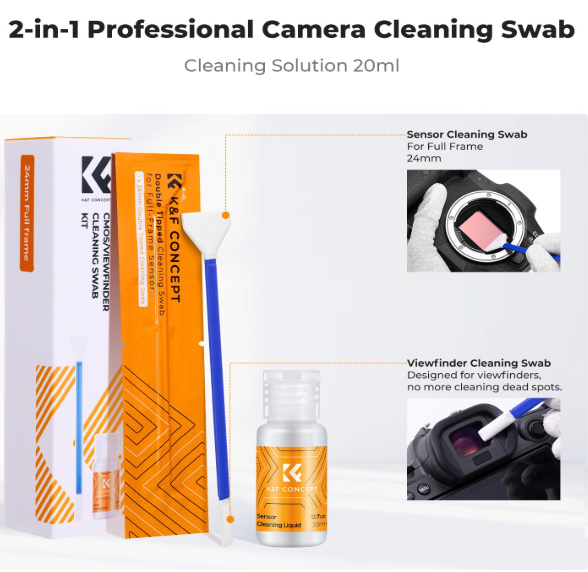 Das K&F Concept Full Frame Cleaning Kit ist eine 2-in-1-Lösung für 24-mm-Vollformat-CMOS-/CCD-Sensoren und Sucher, einschließlich 5 Mikrofasertüchern mit Doppelfunktion, 20 ml streifenfreier Reinigungsflüssigkeit und vakuumversiegelter Verpackung für staubfreien Gebrauch. Es eignet sich ideal für spiegellose/DSLR-Kameras und gewährleistet eine sichere, präzise Reinigung von Objektiven, Bildschirmen und Optiken ohne Kratzer oder Rückstände.