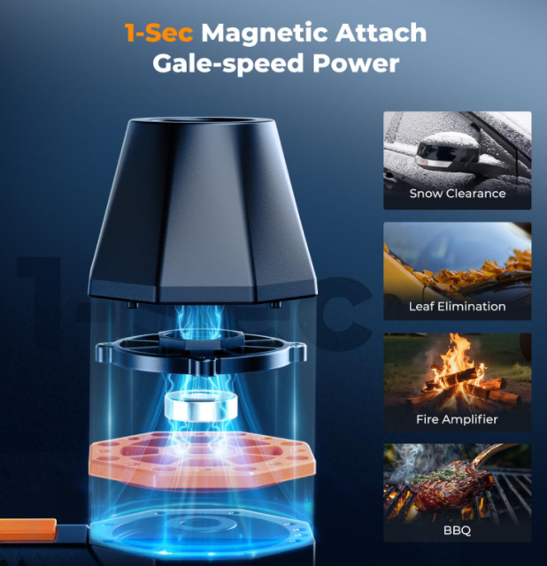 Der magnetische 2-in-1-Druckluftreiniger von K&F Concept ist ein wiederaufladbares Gerät mit bürstenlosem Motor (300.000 U/min, 150 m/s Windgeschwindigkeit, 250 G Kraft), das leistungsstarkes Blasen, Saugen und LED-Beleuchtung für die Reinigung von Computern, Tastaturen, Autos und Outdoor-Ausrüstung kombiniert. Mit magnetischen Düsenaufsätzen, 6 multifunktionalen Bürsten, einem 6.000-mAh-Akku (180 Minuten Laufzeit) und 3 Gangstufen bietet es vielseitige, überhitzungssichere Leistung in einem tragbaren Gehäuse.