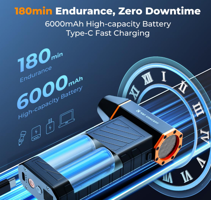 Der magnetische 2-in-1-Druckluftreiniger von K&F Concept revolutioniert die Reinigung mit seinem integrierten bürstenlosen Dreiphasenmotor, der 300.000 U/min für einen Luftstrom von 150 m/s und eine Kraft von 250 G erreicht und eine effiziente Staubentfernung von empfindlichen Elektronikgeräten wie Computern und Tastaturen, Fahrzeuginnenräumen, Haushaltsgeräten und Außenflächen wie Laub oder Lagerfeueranzündern ermöglicht. Das magnetische Befestigungssystem ermöglicht einen sofortigen, positionsunabhängigen Düsenwechsel per Klickverschluss für gezielte Hochgeschwindigkeitsstöße, ergänzt durch 6 multifunktionale Bürsten zum Schrubben von Spalten oder Oberflächen. Das duale LED-System umfasst eine nach vorne gerichtete Koaxialleuchte zur Ausleuchtung von Schmutzpfaden bei schlechter Sicht und eine an der Basis montierte LED mit SOS-Blinklicht für Notfallsignale. Durch nahtloses Umschalten zwischen Gebläse- und Saugmodus werden feine Partikel (bis zu 99 % Effizienz bei 0,3 µm) über einen hinteren Sauganschluss erfasst, wodurch eine vollständige Staubentfernung ohne Rückstände gewährleistet ist. Angetrieben von einem 6.000-mAh-Lithium-Ionen-Akku (3-fache Standardkapazität) unterstützt es eine Laufzeit von 180 Minuten über 3 einstellbare Gänge, wobei ein intelligenter Wärmeschutz den Hochgeschwindigkeitsmodus nach 10 Minuten automatisch abschaltet, um die Lebensdauer des Motors von 7 bis 10 Jahren zu gewährleisten. Dieses kompakte und über USB-C (5 V/2 A, vollständige Aufladung in 3 Stunden) wiederaufladbare Gerät mit einem Gewicht von 0,5 kg arbeitet leise (<60 dB) und sicher (keine Gefahren durch komprimiertes Gas) und ist damit unverzichtbar für Technikbegeisterte, Fotografen und Abenteurer, die mit Präzision und Mobilität Unordnung im Innen- und Außenbereich beseitigen möchten.