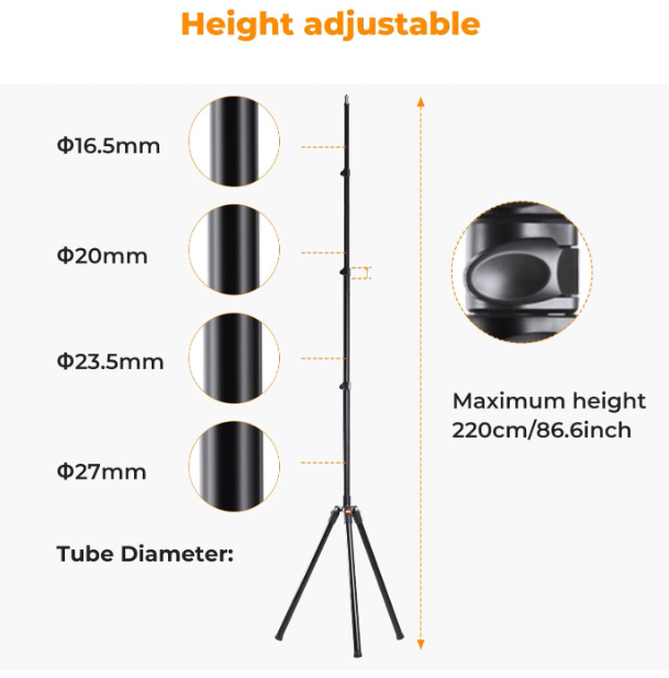 Stabilität trifft auf Stärke mit einem maximalen Rohrdurchmesser von 27 mm und einer bewährten Tragfähigkeit von 4 kg, wodurch schwere Softboxen, Blitzgeräte, Monolights, Schirme oder Reflektoren sicher und ohne Wackeln gehalten werden. Das intuitive Schnellverschlusssystem ersetzt herkömmliche Drehverschlüsse und ermöglicht eine schnellere, reibungslosere und zuverlässigere Höhenverstellung, was die Effizienz des Arbeitsablaufs bei schnellen Shootings erhöht. Eine universelle 1/4"-Schraubspitze an der Oberseite nimmt eine Vielzahl von Beleuchtungs- und Modifikatoraufsätzen auf und macht ihn zu einem unverzichtbaren Allzweckstativ für Porträts, Produkt- oder Videoproduktionen.