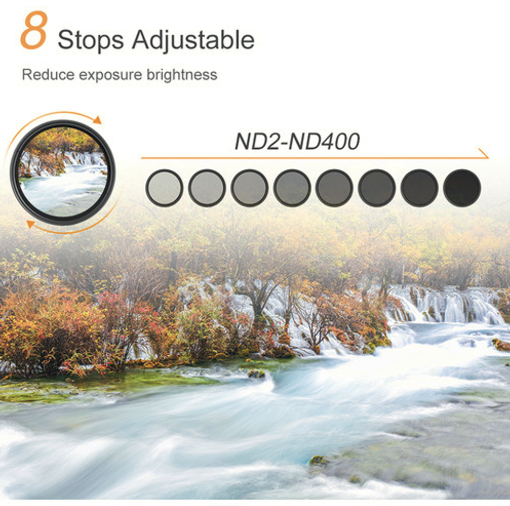 Entfesseln Sie kreative Belichtungssteuerung mit dem K&F Concept 40,5 mm True Color Variable ND2–ND400 Filter – einem kompakten und dennoch leistungsstarken Werkzeug für Fotografen und Filmemacher, die Flexibilität und optische Präzision verlangen. Mit einem stufenlos einstellbaren Bereich von ND2 bis ND400 gibt Ihnen dieser Filter die volle Kontrolle über die Belichtung, egal ob Sie Langzeitbelichtungen von Landschaften machen, seidige Wassereffekte erzeugen, dynamische Bewegungsspuren einfangen oder kinoreife Verschlusszeiten in hellen Außenumgebungen beibehalten möchten.