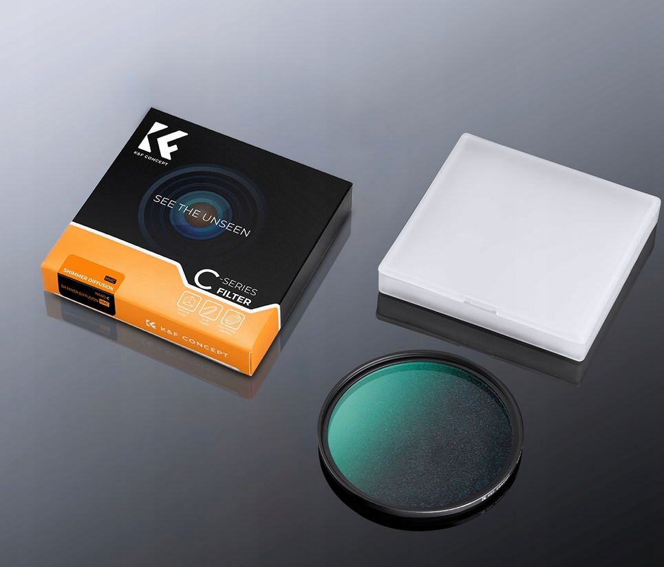K&F Concept 55 mm C-Serie Microlight Mirror Shimmer Diffusionsfilter: HD-Glas mit NANO-C-Antireflexbeschichtung, schlanker 3,3 mm Aluminiumrahmen für weiche, traumhafte Lichtstreuung und ätherische Schimmereffekte.