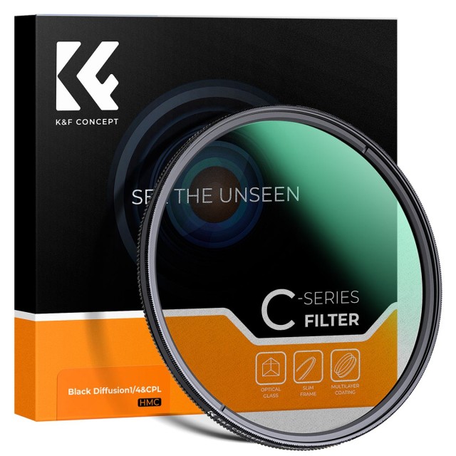 Der multifunktionale CPL + Black Mist 1/4 Filter von K&F Concept mit 62 mm Durchmesser kombiniert kreative Streuung mit effektiver Polarisation und bietet Fotografen und Videografen verbesserte Kontraststeuerung, reduzierte Reflexionen und einen weichen, kinoreifen Glanz in einem einzigen, vielseitigen Filter.