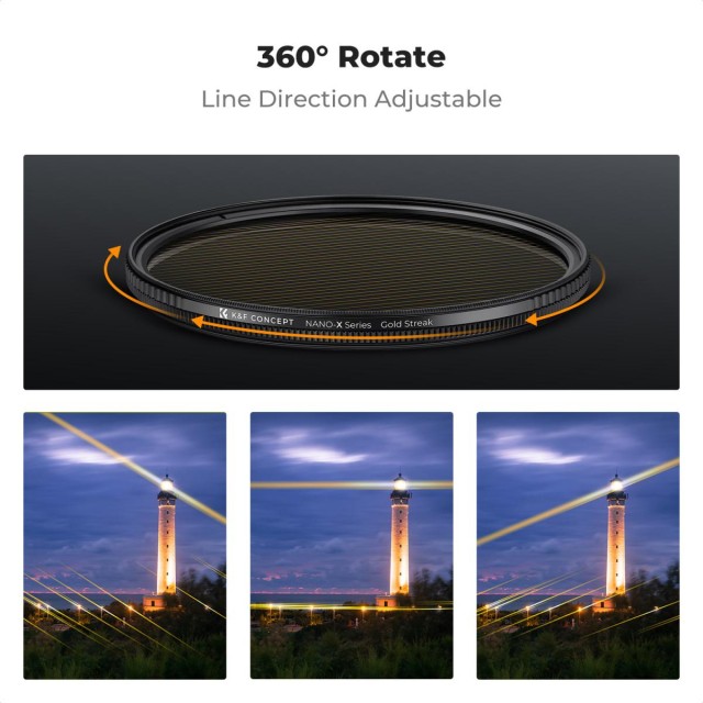 Durch die Installation des K&F Concept Streak Goldfilters vor Ihrem Objektiv können Sie denselben Flare-Effekt erzielen wie mit einem anamorphotischen Objektiv. Ob Foto oder Video – dieser Filter verleiht Ihren Bildern einen linearen Flare-Effekt, der atemberaubende visuelle Effekte erzeugt und die künstlerische Wirkung verstärkt.