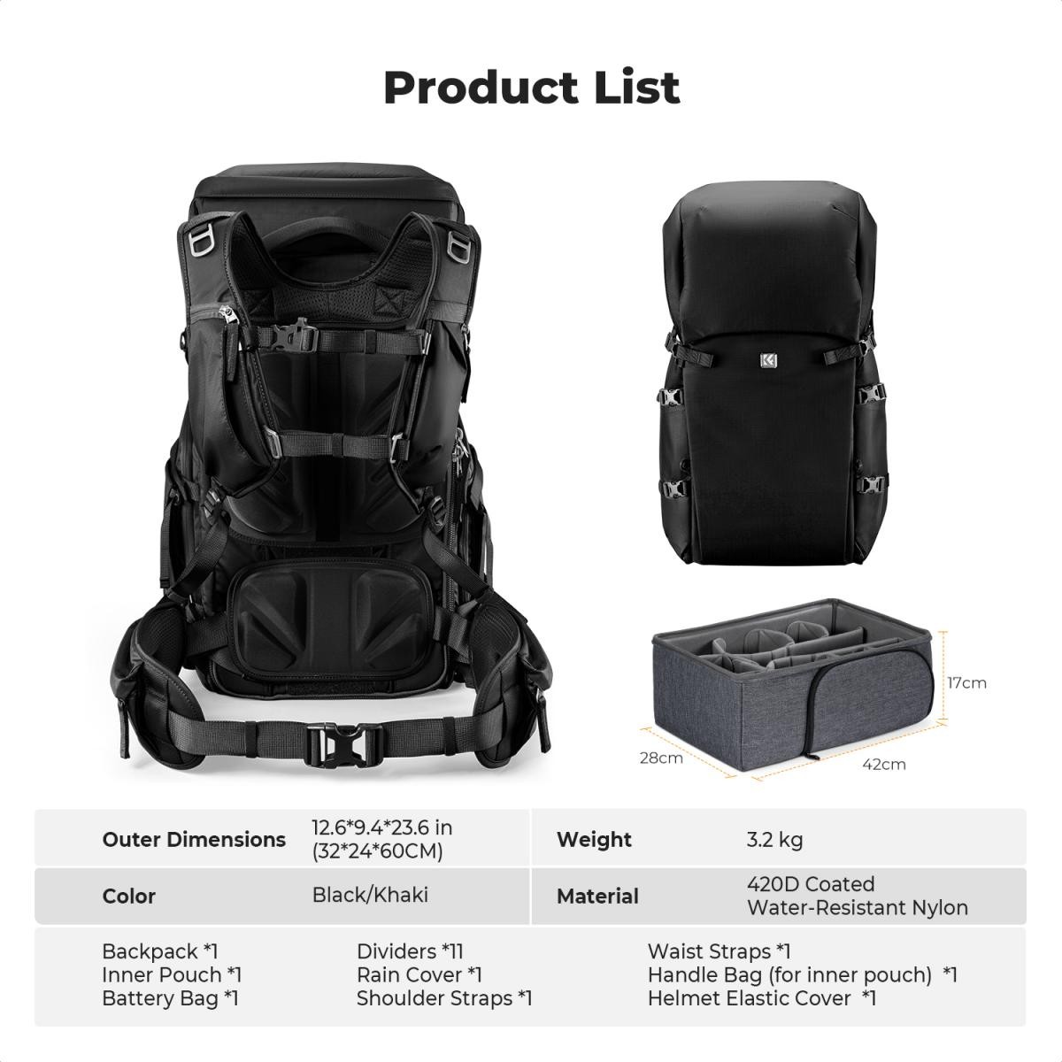 Der K&F CONCEPT Star Wander05 40L Kamerarucksack (schwarz) bietet vielseitigen Stauraum mit großem Fassungsvermögen für Fotografen und Reisende. Er ist für 2 Kameras, 6 Objektive und Zubehör ausgelegt und verfügt über anpassbare Fächer, einen schnellen seitlichen Zugriff, ergonomische Gurte und strapazierfähiges, spritzwassergeschütztes 420D-Nylon…