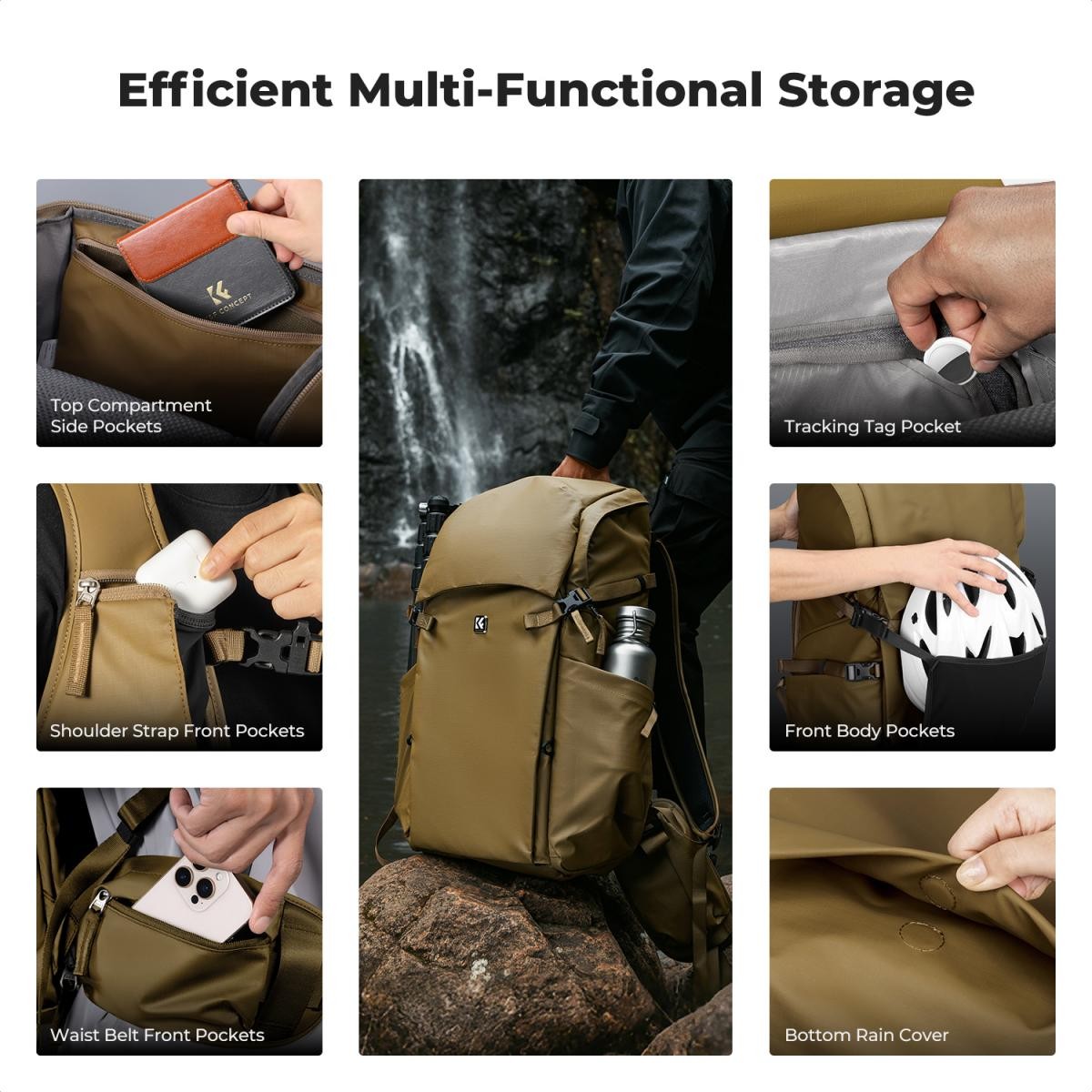 Der Rucksack besteht aus hochdichtem, abriebfestem und wasserabweisendem Material und bietet zuverlässigen Allwetterschutz vor Feuchtigkeit, Tau und leichtem Regen, sodass Ihre wertvolle Kameraausrüstung auch in unvorhersehbaren Outdoor-Umgebungen sicher aufbewahrt ist. Dank des modularen, herausnehmbaren Kameraeinsatzes lässt sich die Tasche leicht von einem vollwertigen Fotorucksack in einen Standard-Wander- oder Reiserucksack verwandeln und bietet somit eine hervorragende Vielseitigkeit.