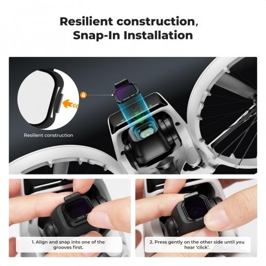 Dank ihres Schnellverschlusses lassen sich die Filter in Sekundenschnelle sicher an Ihrer DJI Flip-Kamera befestigen – ganz ohne Werkzeug. Sie sind leicht und dennoch robust und passen sich nahtlos an, ohne die Flugleistung oder Bildqualität zu beeinträchtigen.