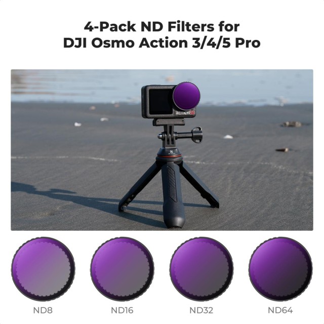 Verbessern Sie Ihre DJI Osmo Action 4 -Fotografie und -Videografie mit dem K&F CONCEPT 4-Pack ND-Filter-Kit. Mit optischen Glasfiltern ND8, ND16, ND32 und ND64 mit fortschrittlicher Mehrfachbeschichtung bietet dieses Kit überragende Klarheit, Kratzfestigkeit und vielseitige Lichtreduzierung für Aufnahmen in professioneller Qualität bei allen Lichtverhältnissen.