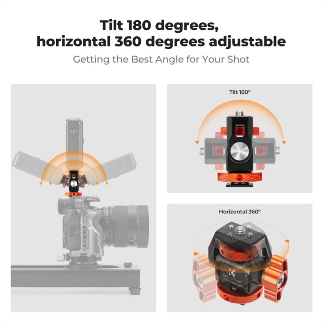 Field Monitor Mount Monitorhalterung schwenk- und neigbar mit Cold Shoe. HalterungHergestellt aus Aluminiumlegierung, stark und stabil, mit einer Tragfähigkeit von 3kg. Die 1/4"-Schraube und der Teleskop-Positionierungsstift an der Oberseite der Halterung verhindern effektiv, dass sich das Gerät durchbiegt und machen es stabil und sicher, wenn es in Gebrauch ist.