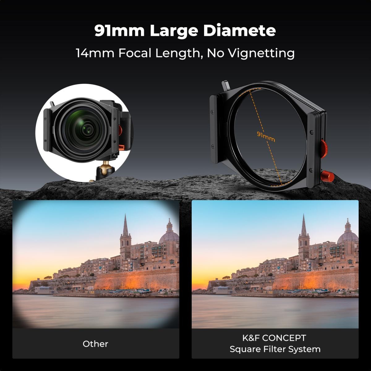 Das K&F Concept KF High-End Square Bracket System aus der Nano X Pro-Serie ist eine hochwertige Filterhalterlösung mit einem ultraschlanken Design und einem integrierten 95-mm-CPL. Es wurde entwickelt, um Vignettierungen selbst bei Ultraweitwinkelobjektiven zu vermeiden, und bietet eine preisgekrönte Konstruktion, eine 36-lagige Nanobeschichtung der Optik und Kompatibilität mit mehreren Objektivgrößen durch mitgelieferte Adapterringe.