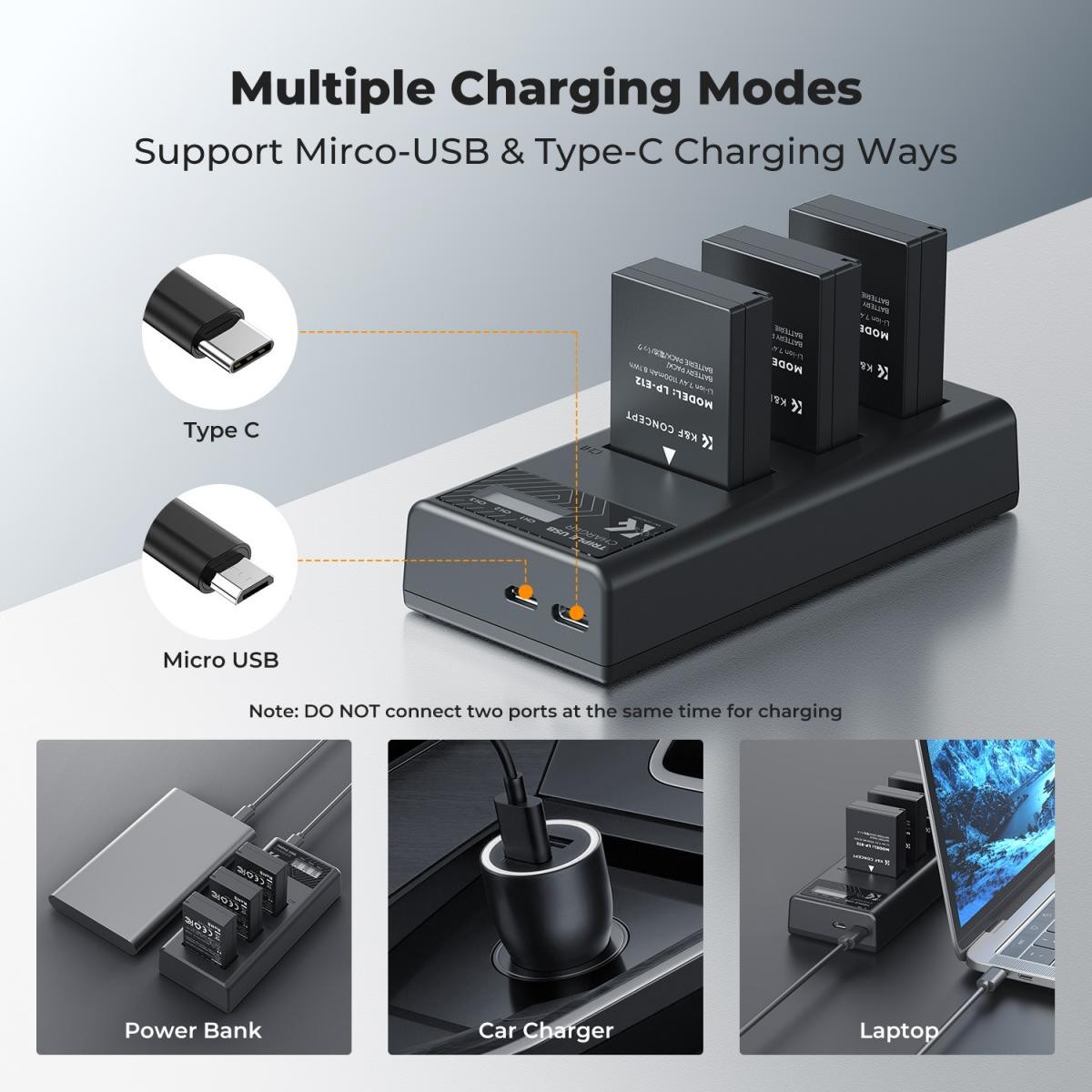 - * 【Mehrere Sicherheitsvorkehrungen】CE/FCC/RoHS/3C-zertifiziert, mit mehreren integrierten Schutzvorrichtungen (Überspannung, Überstrom, Kurzschluss, Überhitzung, Überladung). Das Paket enthält 3 x LPE12-Akkus, 1 x 3-fach-LPE10-Akkuladegerät, 1 x USB-C-Ladekabel.