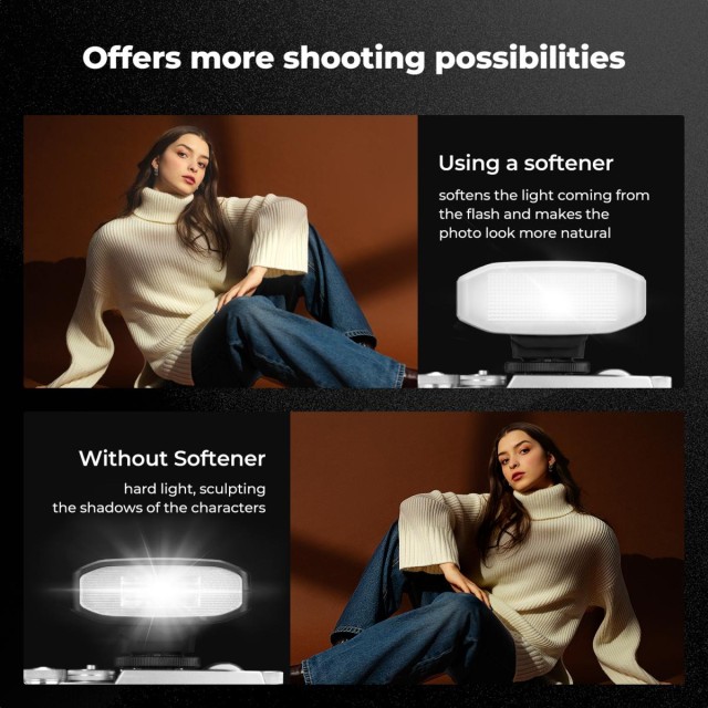 Universelle Kompatibilität: Der standardmäßige Einfachkontakt-Blitzschuh passt für Canon, Nikon, Sony, Panasonic, Olympus, Pentax und weitere Marken.