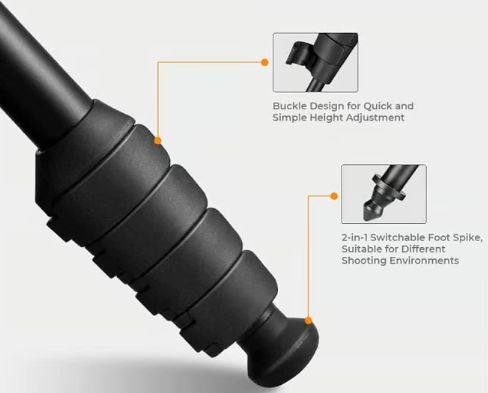 Was das MS16 auszeichnet, ist sein innovatives Fünf-Bein-Design, das durch die Verbreiterung an der Basis für verbesserte Balance auf unebenem Gelände eine Stativ-ähnliche Stabilität aus einem einzigen Stativ bietet, während der 360°-Panoramakopf flüssige, vollständige Schwenks ermöglicht, um Aktionen zu verfolgen oder Landschaften präzise zu komponieren. Das benutzerfreundliche Klickverschlusssystem sorgt für blitzschnelle Beinverstellungen und einen sicheren Stand und rastet mit einem befriedigenden Klicken ein, um ein Verrutschen in kritischen Momenten zu verhindern. Dieses Einbeinstativ wurde für den harten professionellen Einsatz entwickelt und kombiniert Materialien in Luft- und Raumfahrtqualität mit durchdachter Ergonomie. Damit können Kreative scharfe, ruhige Aufnahmen in Bewegung machen, ohne dabei auf Geschwindigkeit oder Komfort verzichten zu müssen – die ultimative Kombination aus Tragbarkeit und Leistung in einem schlanken Paket.