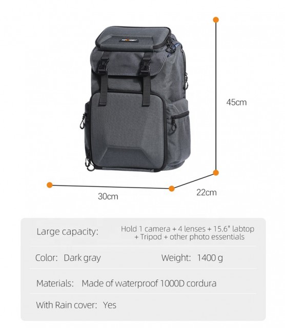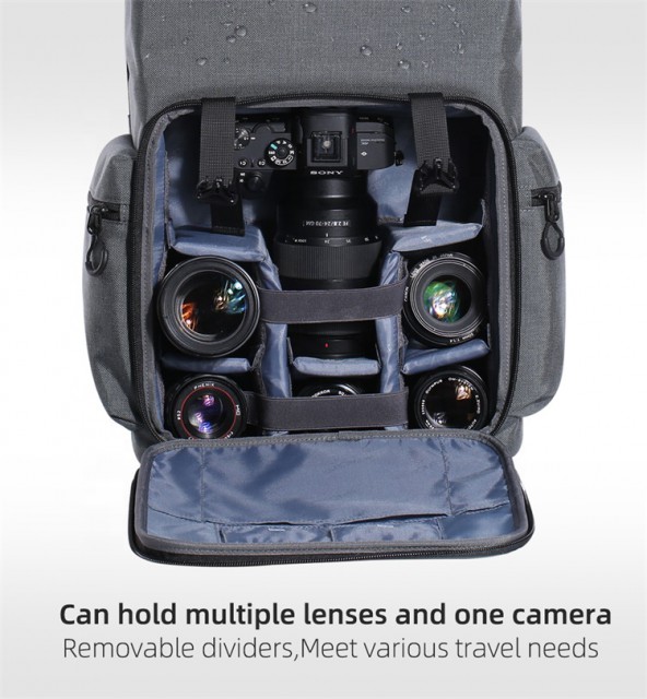 Als professionelle Outdoor-Kameratasche, ist die Kapazität 25L, die oberen und unteren Staufächer, eine Kamera mit mehreren Objektiven, Frontöffnung. Halten Sie 1 Kamera + 4 Objektive + 15,6-Zoll-Labtop + Stativ + andere Foto Essentials.