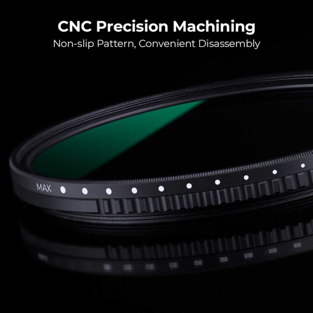Dieser variable ND8-ND2000-Neutraldichtefilter hat einen Filterfaktorbereich von 0,9 bis 3,3 und bietet eine Belichtungsreduzierung von 3 bis 11 Blenden. Er kann dazu beitragen, Bewegungsunschärfe hinzuzufügen und die Schärfentiefe bei der Aufnahme von Standbildern zu verringern und bei der Aufnahme von Videos die richtige Bildrate zu wählen.