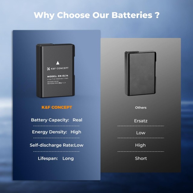 Das K&F Concept Nikon EN-EL14 Akku-Kit enthält 3 leistungsstarke 1050-mAh-Akkus (7,4 V, EN-EL14/EN-EL14a) und sorgt für lang anhaltende Energie, damit Sie mit Nikon-Kameras ohne Unterbrechung fotografieren können. Kompatibel mit Modellen wie D5600, D5500, D5300, D5200, D5100, D3500, D3400, D3300, D3200, D3100, Coolpix P7000/P7100/P7200/P7700/P7800 und anderen mit EN-EL14 betriebenen Geräten.