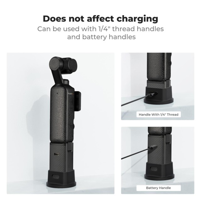 Die Basis ist für Pocket3 konzipiert. Dank der großen Standfläche steht sie stabiler auf dem Schreibtisch und kann nicht umfallen. Perfekte Passform. Sie wurde speziell für Pocket3 entwickelt und lässt sich am Gehäuse, am Gewindegriff und am Endurance-Griff anbringen, wobei die Original-Schutzhülle weiterhin verwendet werden kann.
