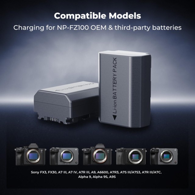 Sony NP-FZ100 18 W modulares Schnellladegerät und Akku-Kit, 2600 mAh Akku mit hoher Kapazität für Sony A7iii, A7R V, IV, Alpha A7C, A6700, ILCE-1M2, A7R3, ZV-E1, FX3, FX30.