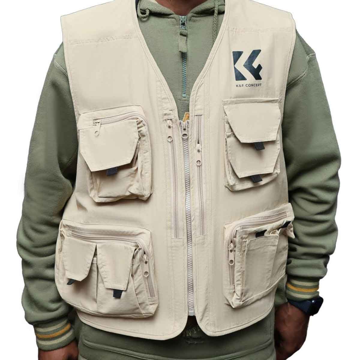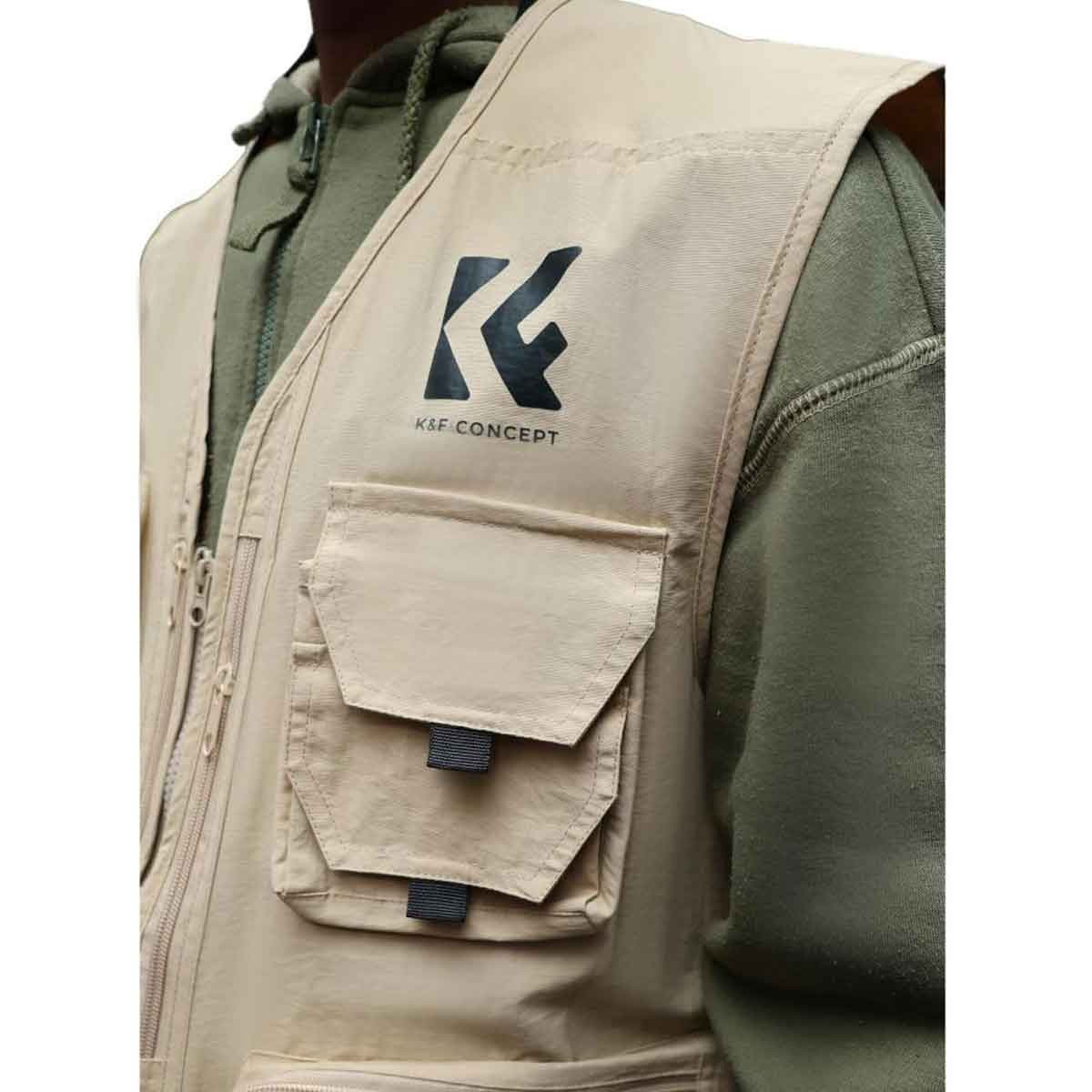 Die K&F Concept Photographer Vest in Khaki (Größe XL) ist eine leichte, atmungsaktive und strapazierfähige Weste für Fotografen und Outdoor-Enthusiasten, die Komfort und schnellen Zugriff auf wichtige Ausrüstung während langer Fotosessions benötigen.