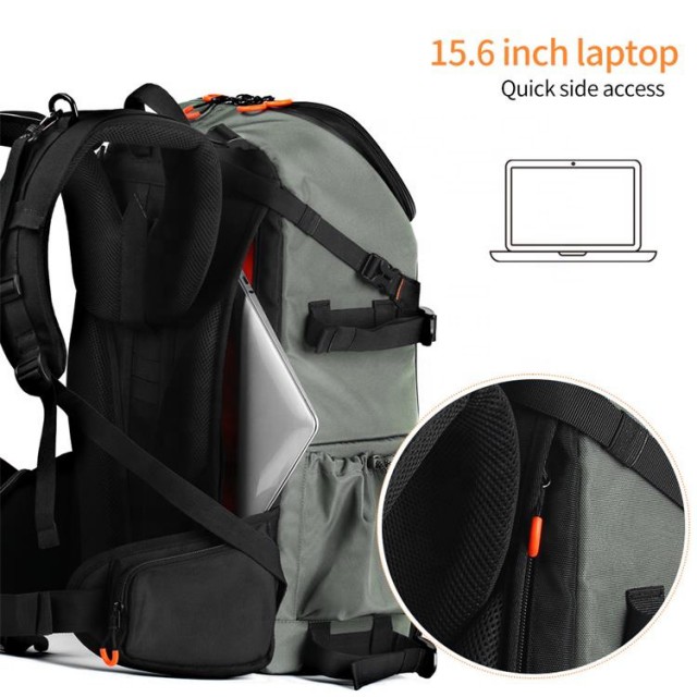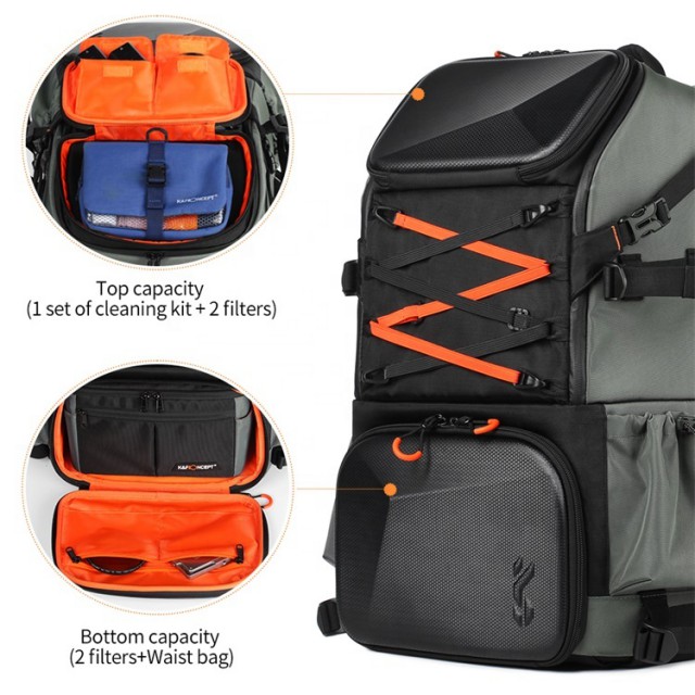 2-Luftkammer-Kameratasche Größe: 34*22*54cm, Gewicht: 2900g, Kapazität: 33L. Wird mit einer Kamera-Umhängetasche geliefert. Kamera-Umhängetasche Größe: 27*12.5*17cm. Geeignet für Outdoor-Aktivitäten, Reisen, Pendeln zur Arbeit und Fotografie. Das Innere der Kameratasche hat eine EVA-Klettverschluss-Trennwand, die herausnehmbar ist und je nach Größe der Ausrüstung frei kombiniert werden kann. Auf der Rückseite befindet sich ein separates Laptop-Fach, in das bis zu einem 15,6-Zoll-Laptop passt. Sie kann auch als Pendler- oder Alltagstasche verwendet werden, was die Organisation vereinfacht.