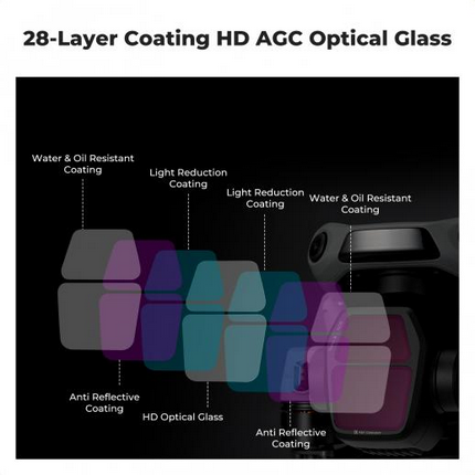 Die Filter bestehen aus optischem HD-Glas und 28 Schichten NANO-Beschichtungen und bieten eine überragende Klarheit, während sie gleichzeitig wasserabweisend, kratzfest und ölbeständig sind und so für Langlebigkeit und Zuverlässigkeit sorgen. Sie sind leicht und sicher und werden rigoros getestet, um die Leistung des Gimbals zu erhalten und einen stabilen Betrieb der Drohne zu gewährleisten.