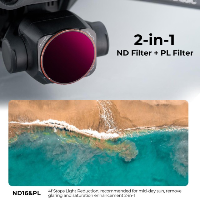 Der speziell für die DJI Mavic 3 Classic entwickelte K&F Concept ND16 & PL-Filtervereint zwei wichtige Effekte in einem einzigen Filter. Die ND16-Funktion reduziert das einfallende Licht um 4 Blendenstufen und eignet sich somit ideal für Aufnahmen bei hellem Tageslicht, da sie eine bessere Kontrolle über die Verschlusszeit und Belichtung ermöglicht. Der integrierte CPL (Polarisator) minimiert Reflexionen und Blendeffekte von nichtmetallischen Oberflächen wie Wasser und Glas und verbessert gleichzeitig die Farbsättigung und den Kontrast für lebendigere Luftaufnahmen.