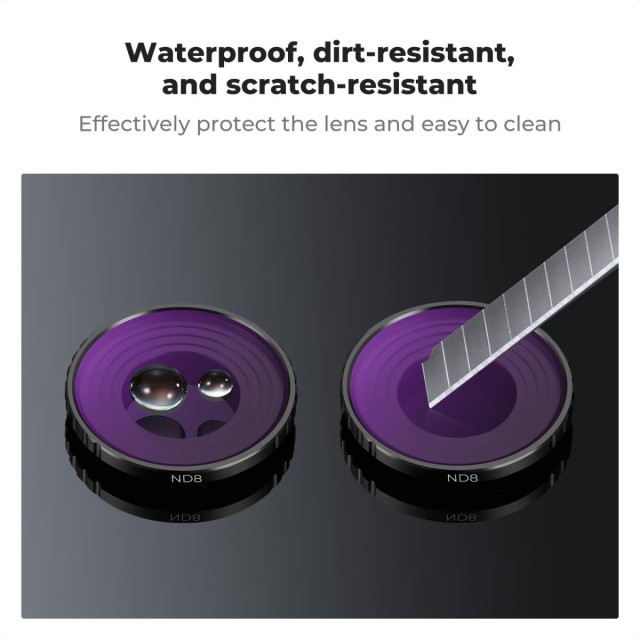 Verbessern Sie Ihre DJI Osmo Action 5 Pro und Osmo Action 4 Aufnahmen mit dem K&F ND8 Filter, der für präzise Lichtkontrolle in teilweise bewölkten Umgebungen entwickelt wurde. Dieser ND-Filter (Neutral Density) mit 3 Blendenstufen ermöglicht es Ihnen, eine sanftere Bewegungsunschärfe, eine geringere Überbelichtung und einen besseren Dynamikbereich bei hellen Bedingungen zu erzielen, um Videos in Kinoqualität und scharfe Fotos zu gewährleisten.