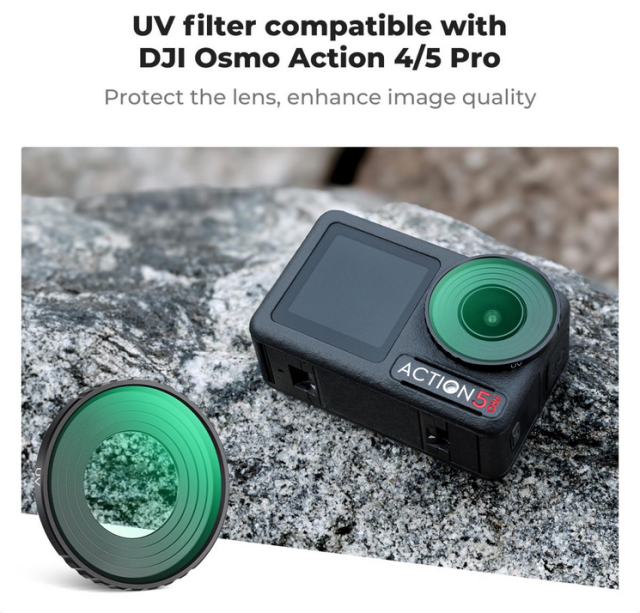 Perfekt für Outdoor-Abenteurer ist dieser UV-Filter ein vielseitiges Zubehör, das die Leistung Ihres DJI Osmo Action 4/5 Pro in jeder Umgebung schützt und steigert.