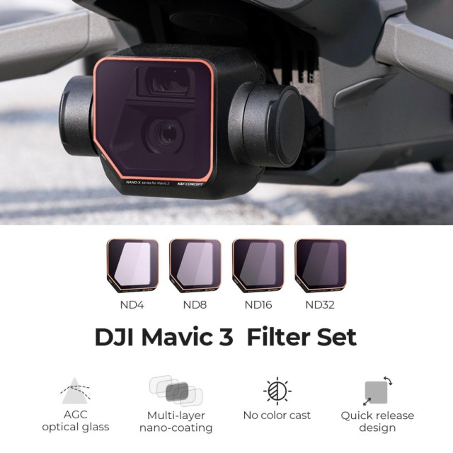 K&F Concept ND Filter Set Kompatibel mit DJI Mavic 3/DJI Mavic 3 Cine,4 Pack-(ND4/ND8/ND16/ND32) mit 28 Multi-Layer Beschichtungen