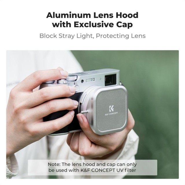 Kompatibel mit Fujifilm-Kameras X100/X100F/X100S/X100T/X100V/X100VI. Der UV-Filter besteht aus importiertem AGC-Optikglas mit einer Lichtdurchlässigkeit von bis zu 99,6 % und einer 28-fachen beidseitigen wasserfesten und kratzfesten Beschichtung. Er reduziert ultraviolettes Licht und hilft, Blaustiche in Bildern zu beseitigen. Schützt das Objektiv vor Staub, Schmutz und Kratzern.