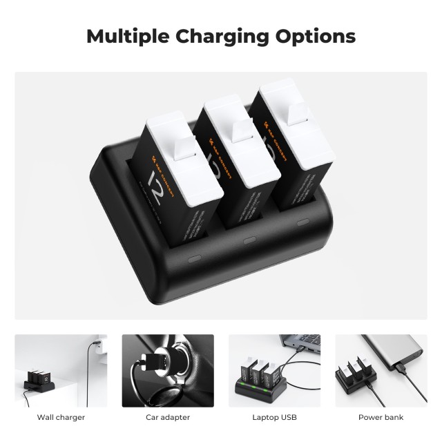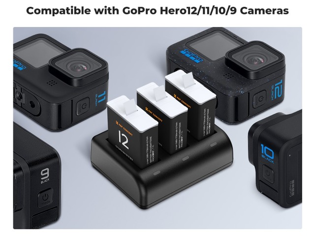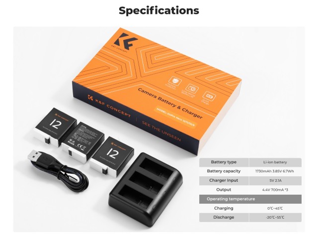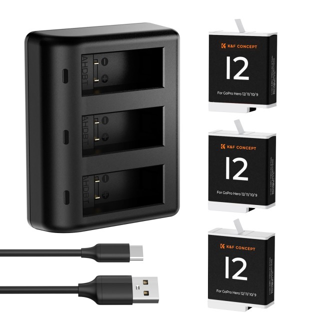 K&F Concept Hero 12 Akku 3er-Pack 1730mAh Enduro Akkus mit 3-Slot Ladegerät Kompatibel mit GoPro Hero 12, GoPro Hero 11, GoPro Hero 10, GoPro Hero 9 Black Kamera. Original Standard. 3-Pack 1730mAh Enduro-Batterien angenommen hochwertige Batteriezelle, mit dem ursprünglichen Standard, Nennspannung 3.85V, 1730mAh, echte Kapazität, keine Batterie Memory-Effekt.