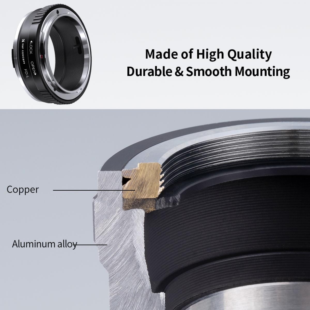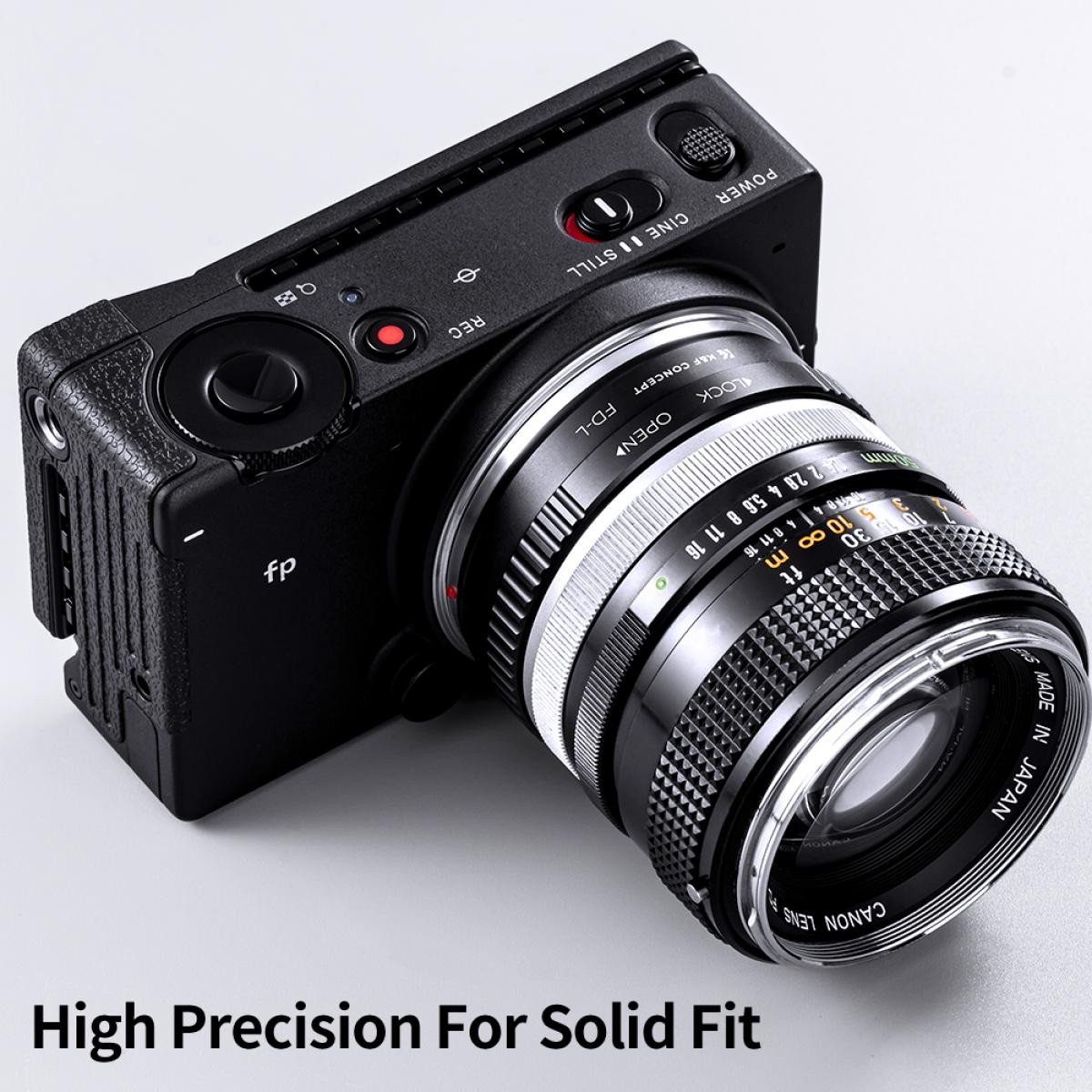 Der K&F Concept FD-L-Adapter für manuelles Fokussieren ist mit Canon FD- und FL-Objektiven für Kameras mit L-Mount-Bajonett kompatibel.