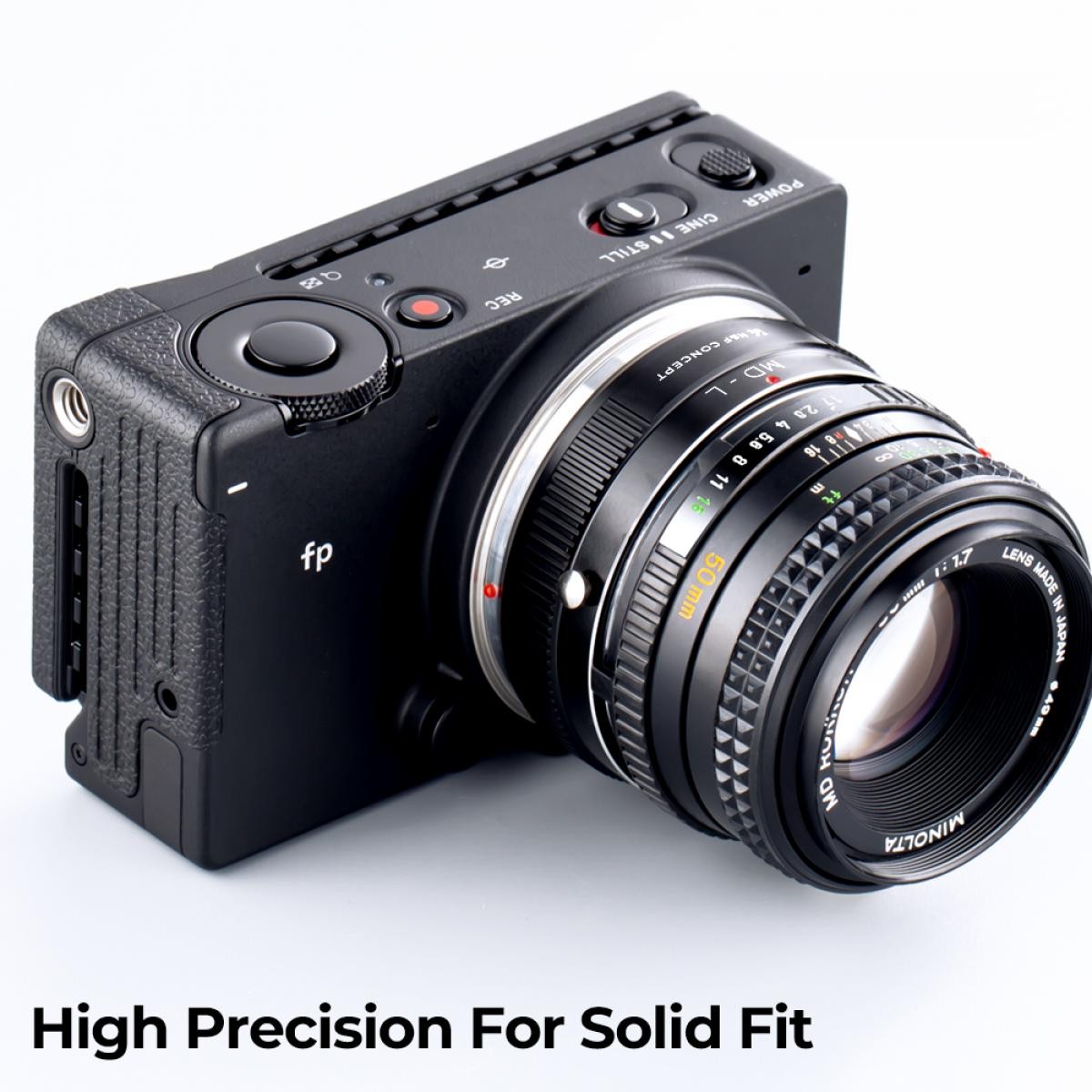 Der K&F Concept MD-L Adapter für manuelles Fokussieren ist kompatibel mit Minolta Rokkor-Objektiven (SR/MD/MC) für Kameras mit L-Mount-Bajonett.