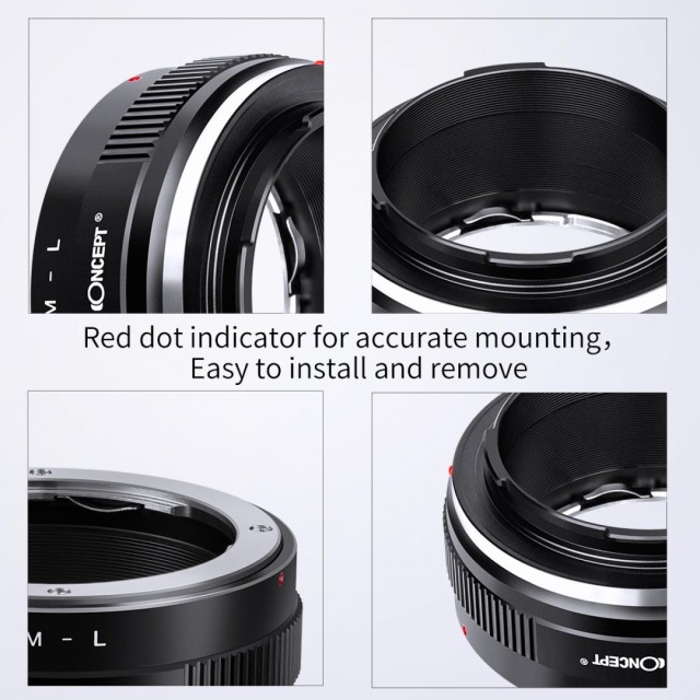 Der K&F High Precision Lens Adapter Mount OM-L ist ein manueller Objektivadapter, der es Ihnen ermöglicht, Olympus OM-Objektive mit Schraubanschluss an L-Mount-Kameras wie der Leica SL-Serie, Panasonic Lumix S-Serie und Sigma FP-Kameras zu verwenden. Dieser Adapter ist perfekt für diejenigen, die gerne manuell fokussieren, da er keine elektronischen Kontakte besitzt, d.h. er unterstützt weder Autofokus noch Blendensteuerung. Die Blende des Objektivs wird standardmäßig auf die maximale Einstellung gesetzt.