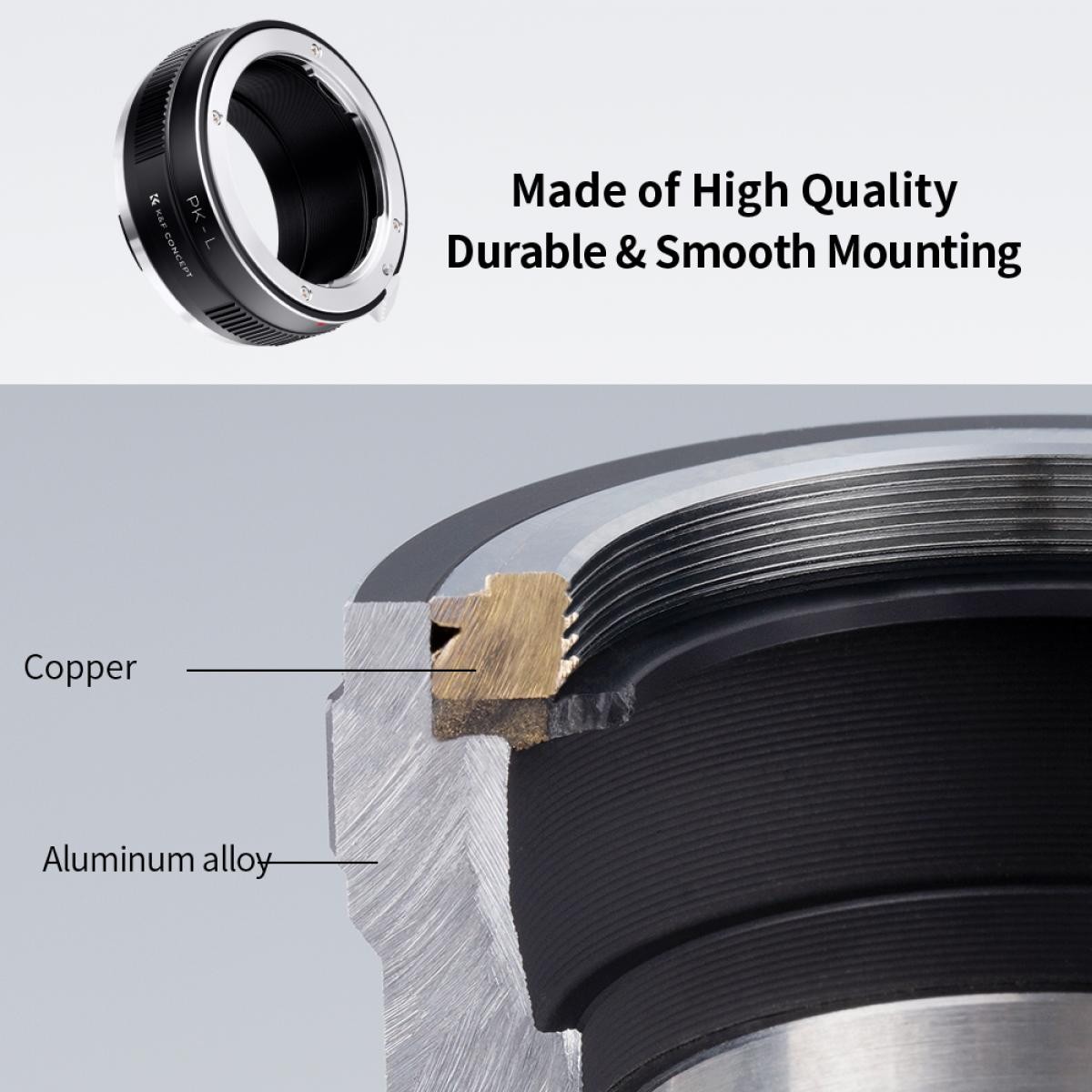 • Verbinden Sie Pentax K-Objektive mit spiegellosen L-Mount-Kameras.