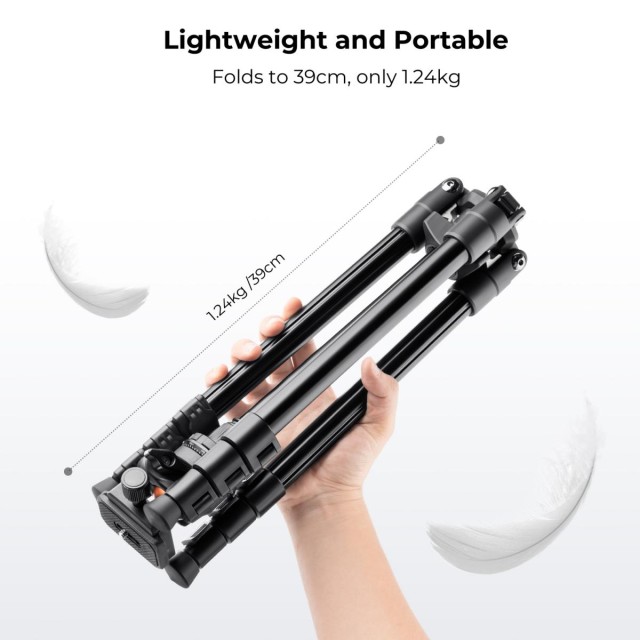 Kompaktes und tragbares Stativ - perfekt für Reisen, Vlog und Arbeit. Qualität Militär Magnesium-Aluminium-Legierung, Korrosionsbeständigkeit; Stativ mit Kugelkopf wiegt nur 2.56 lbs/1.16kg, kann es 180°reflexed und gefaltet werden, um 390mm/15.35", einfach in einem Rucksack oder Koffer zu setzen, wenn Reisen.