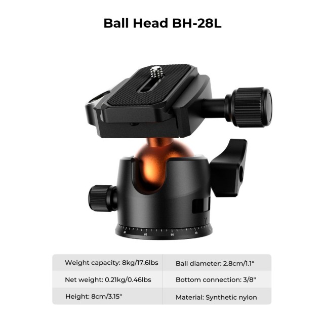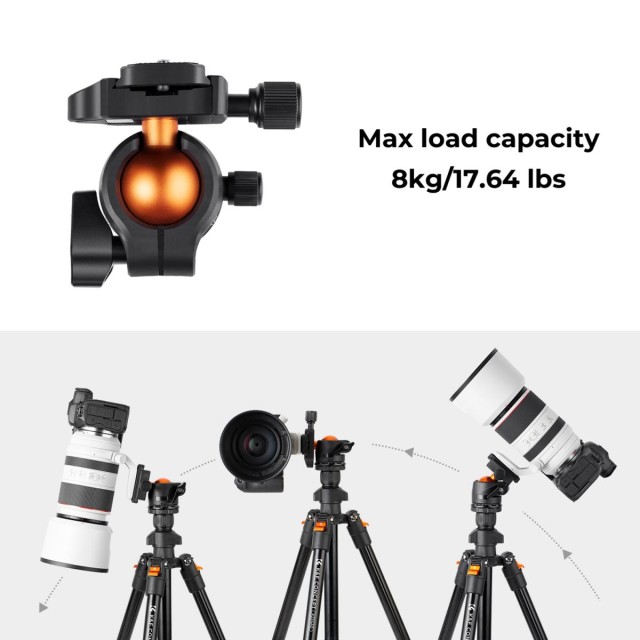 - * 【360° PANORAMA】Der 28mm große KF-28 Metallkugelkopf bietet eine Tragfähigkeit von 17.64lbs/8kg, er kann um 360 Grad gedreht werden und hilft, den Aktionsradius der DSLR-Kamera bei Panoramaaufnahmen zu erweitern.