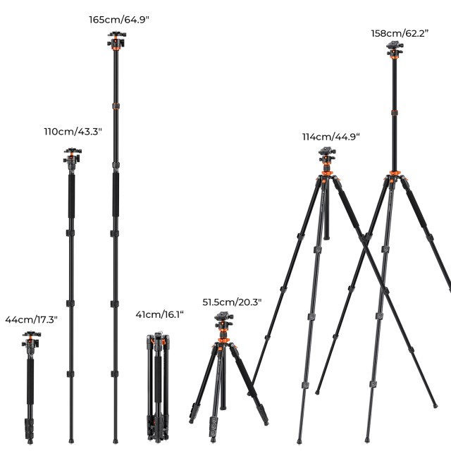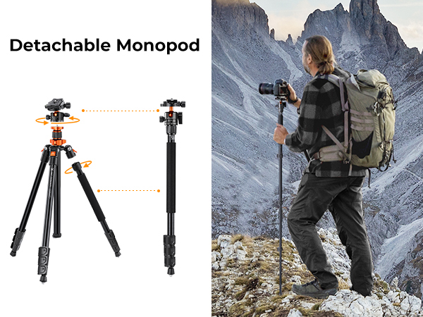 2.Abnehmbares Einbeinstativ: Es kann in ein leichtes Einbeinstativ oder Spazierstock allein verwandelt werden, um Ihre Fotografie vielfältiger zu machen.