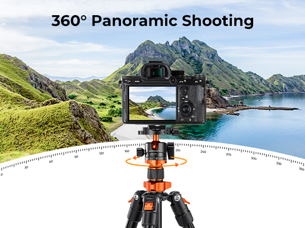 1.360° PANORAMA:Der 28mm große KF-28 Metallkugelkopf bietet eine Tragfähigkeit von 10kg und kann um 360 Grad gedreht werden.