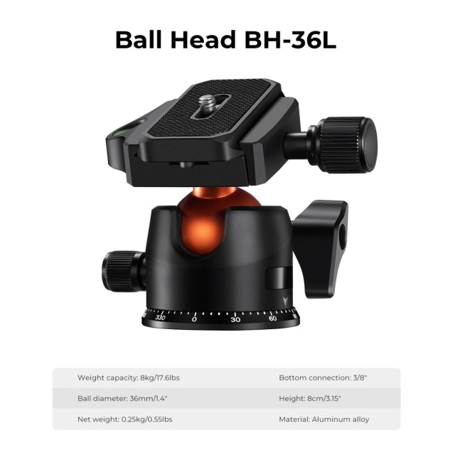• * 【360-Grad-Metall-Kugelkopf】36mm-Metall-Kugelkopf kann zu jedem Winkel gedreht werden, den Sie wollen, um die Reichweite der Kamera-Aktivität während des Schwenks zu verbessern.Das 360-Grad-Schwenkrad ermöglicht es Ihnen, Präzisionsaufnahmen zu machen, um die Schönheit der Landschaften zu erfassen.