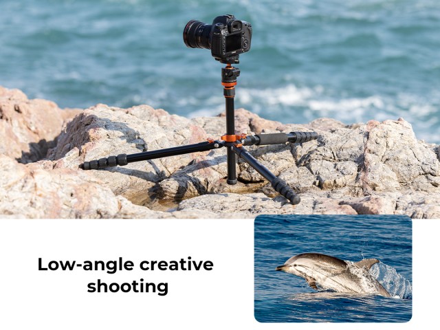 * 【Multi-Angle Shooting】Spring selbstverriegelnde Fußrohr-Winkelverstellungstaste, einfach drücken und loslassen, um den Öffnungs- und Schließwinkel der drei Beine schnell einzustellen; kann Ihnen helfen, niedrigste Winkelaufnahmen, Makroaufnahmen und andere spezielle Fotografie durch umgekehrte zentrale Achse zu erreichen."
