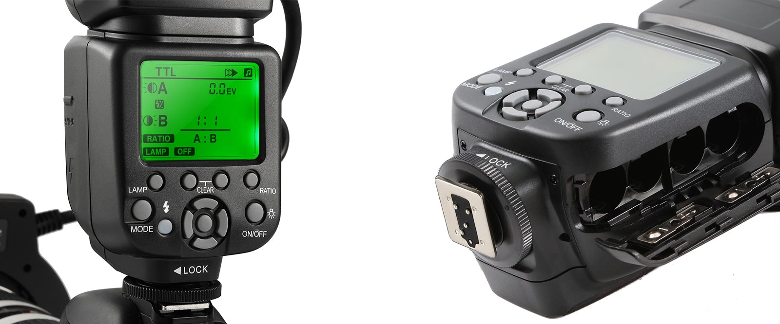E-TTL-Steuerung mit Blitzkorrektur, manuelle Blitzsteuerung und Stroboskop-/Multiblitzsteuerung. Dank der doppelten Blitzröhre mit separater Helligkeitssteuerung können Sie entweder beide Röhren gleichzeitig oder jede einzelne Röhre gleichzeitig zünden, um eine gleichmäßige Ausleuchtung Ihres Motivs bei hochempfindlichen Aufnahmen zu erreichen.