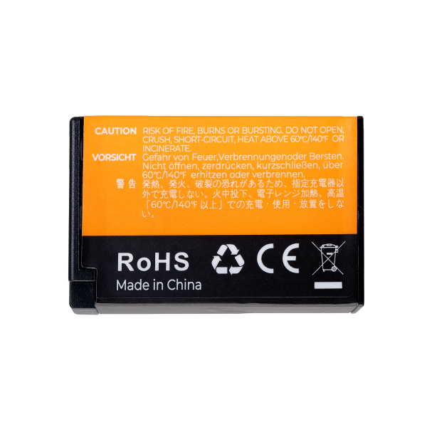 Zur Pflege Ihres neuen Kamera-Akkus ist es am besten, wenn er vor dem ersten Gebrauch vollständig aufgeladen wird. Dies trägt dazu bei, die Gesamtleistung und Lebensdauer des Akkus zu optimieren. Akkus erbringen ihre beste Leistung nach 3 Nutzungs- und Ladezyklen und nicht beim ersten Gebrauch. Das Freilegen der internen Chemikalien stellt eine Brandgefahr dar, daher sollte das äußere Gehäuse niemals beschädigt werden. Ein Kurzschluss kann die Batterie beschädigen, halten Sie sie daher trocken und von Wasser fern. Achten Sie darauf, dass Ihre Batterie keine Temperaturen über 60 °C erreicht. Denken Sie daran, dass extrem kalte Bedingungen in der Regel die Leistung der Batterie verringern.