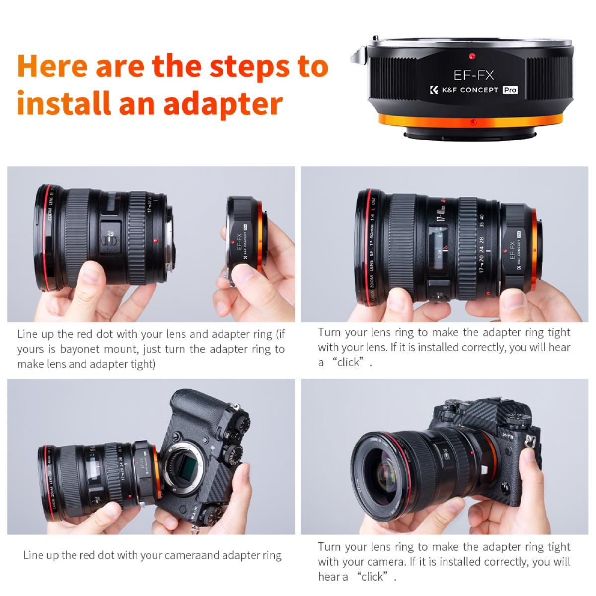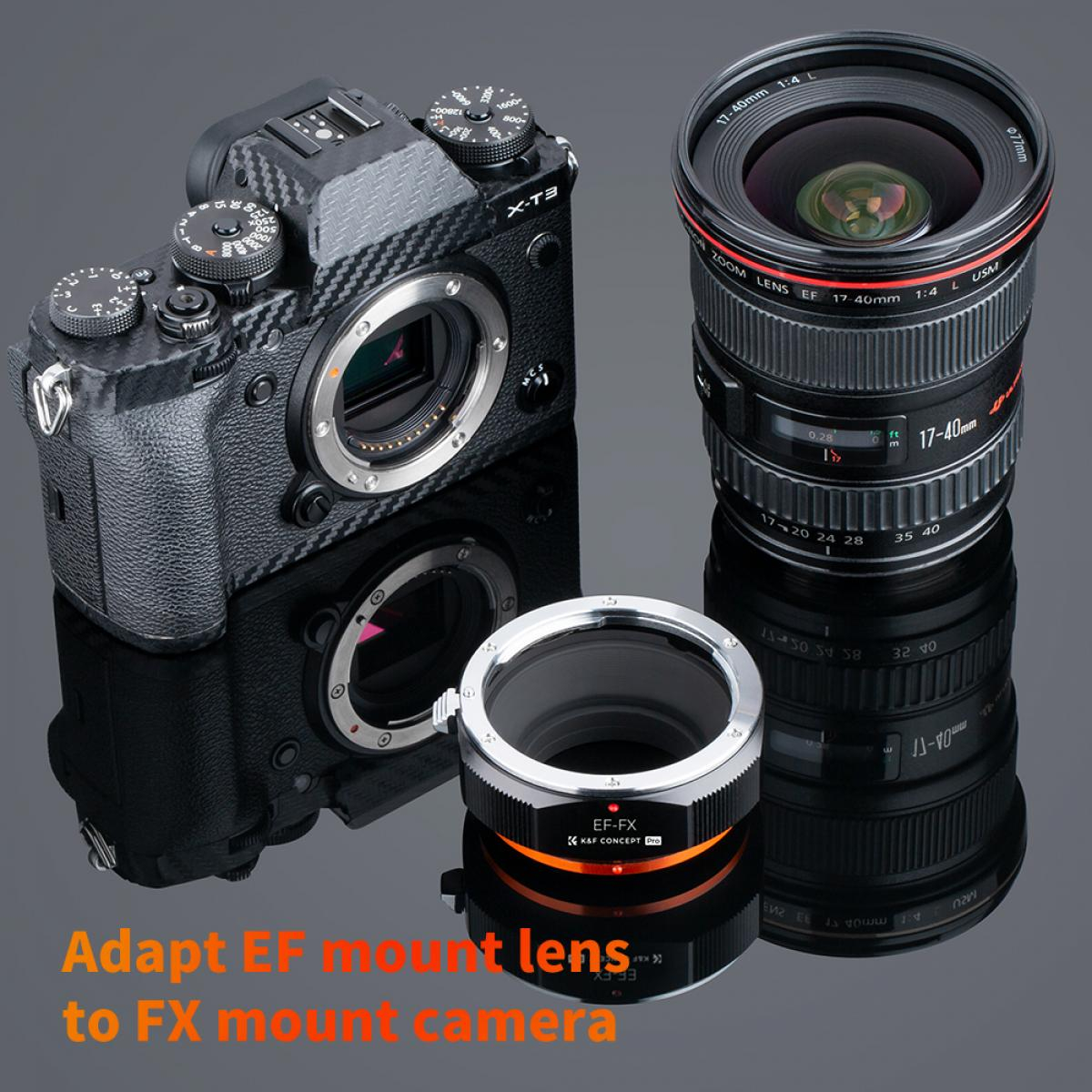 Der K&F M12115 EOS-FX Objektivadapter ermöglicht den Anschluss von Canon EF/EF-S Objektiven an Fuji FX-Mount Kameras und bietet hohe Präzision, eine robuste Konstruktion und volle manuelle Kontrolle.